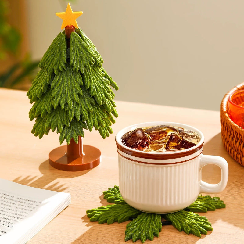 This Christmas tree design features detachable “leaves” that double as heat mats—perfect for protecting your table while adding a cozy holiday touch.